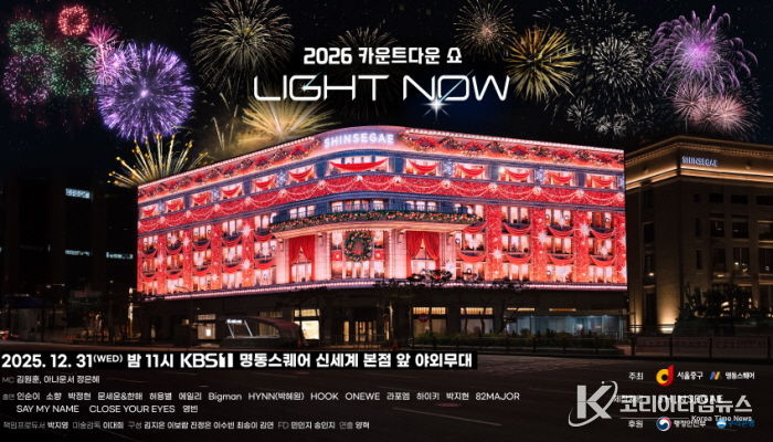 코리아타임뉴스 윤광희 기자 | 서울 중구는 오는 12월 31일 밤 11시, 명동스퀘어 일대에서 열리는〈2026 카운트다운 쇼 LIGHT NOW〉를 'KBS1TV'와 'KBS 유튜브' 채널을 통해 전 세계에 생중계한다고 밝혔다. 행사 현장에 방문하지 못하더라도 TV와 모바일을 통해 편안하게 새해의 감동을 함께할 수 있다.