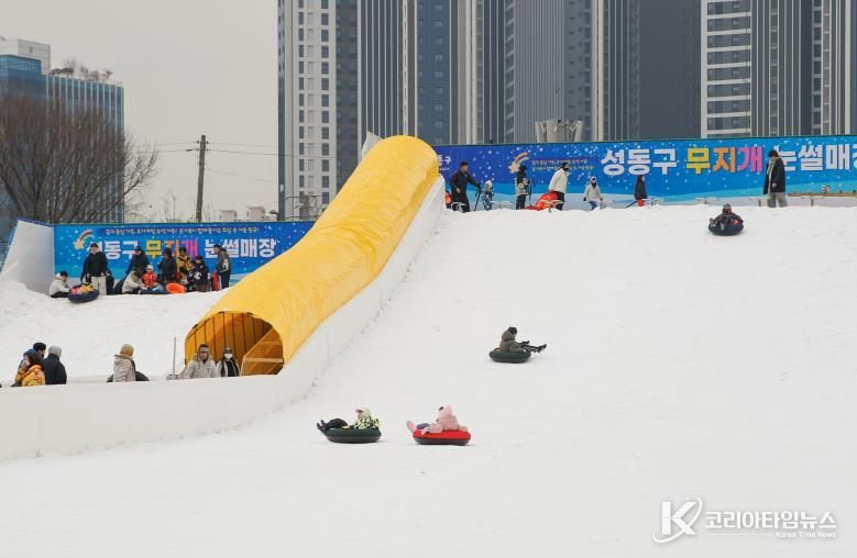 코리아타임뉴스 오영주 기자 | 서울 성동구가 행당동 무지개텃밭(행당동 76-3)에 도심 속 겨울 놀이터 ‘성동구 무지개 눈썰매장’을 조성하고 오는 31일부터 내년 2월 8일까지 운영한다고 밝혔다.