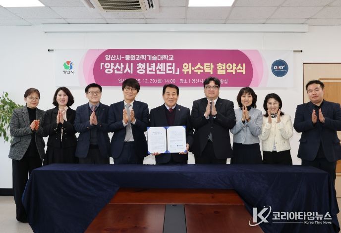 코리아타임뉴스 오영주 기자 | 양산시는 지난 29일 시청 상황실에서 동원과학기술대학교 산학협력단(단장 차진훈)과 ‘양산시 청년센터’ 운영을 위한 위·수탁 협약을 체결했다고 밝혔다.