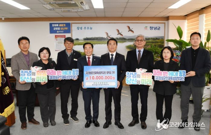 코리아타임뉴스 경남취재본부 | 산림조합중앙회 부산울산경남지역본부(본부장 강주호) 지난 29일 (재)창녕군인재육성장학재단에 지역 인재육성을 위한 장학금 1,000만 원을 기탁했다.