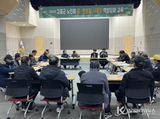 코리아타임뉴스 전남취재본부 | 고흥군은 지난 29일 군청 우주홀에서 고흥군 노인회 16개 읍·면 분회 경로당 사무장 16명을 대상으로 경로당·경로식당 운영과 노인복지사업 전반에 대한 역량강화 교육을 실시했다고 밝혔다.