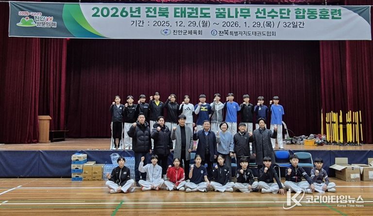 코리아타임뉴스 전북취재본부 | 진안군은 지난 12월 29일부터 내년 1월 29일까지 32일간 전북특별자치도 태권도 꿈나무 선수단 및 합동훈련팀 212명이 진안 문예체육회관에서 전지훈련에 돌입했다고 밝혔다.