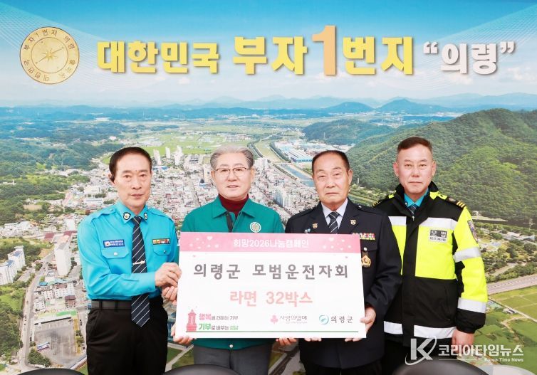 코리아타임뉴스 경남취재본부 | 의령군은 지난 30일, 연말 이웃돕기를 위해 의령군 모범운전자회가 라면 32박스(100만 원 상당)를 기탁했다고 밝혔다.