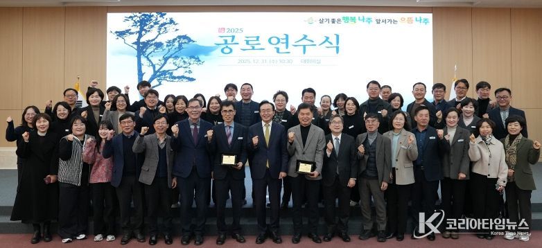 코리아타임뉴스 전남취재본부 | 전라남도 나주시가 2025년 한 해 동안의 시정 성과를 되돌아보고 시민과 공직자의 헌신에 감사를 전하기 위해 종무식과 공로연수식을 열며 한 해를 뜻깊게 마무리했다.
