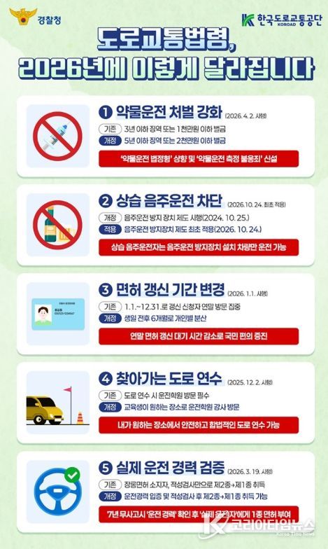 코리아타임뉴스 윤광희 기자 | ① 약물운전 처벌 강화(2026.4.2. 시행)
