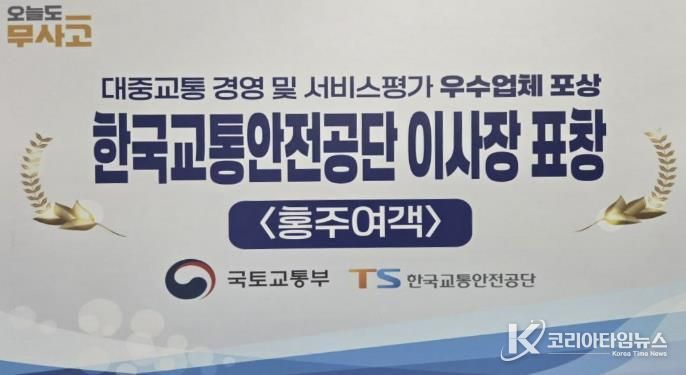 코리아타임뉴스 충남취재본부 | 홍성군을 대표하는 노선여객운송사업자 홍주여객이 대중교통 경영 및 서비스평가 관련 교통안전공단 이사장 표창을 수상하고, 충남도 경영 및 서비스평가에서 우수한 성적을 기록하며 받은 인센티브를 운수종사자의 건강검진을 지원하며 지역 주민에게 더욱 신뢰받는 대중교통 운영자로 자리매김했다.
