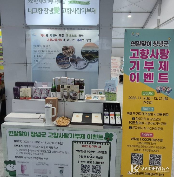 코리아타임뉴스 경남취재본부 | 창녕군은 고향사랑기부제 시행 이후 꾸준한 성과를 이어가며, 2025년 모금액이 4억 원을 돌파했다고 밝혔다.