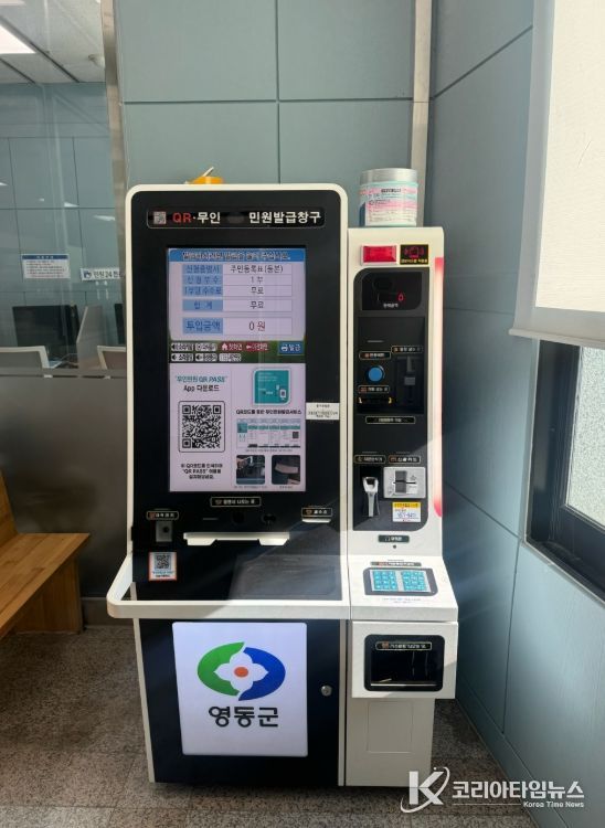 코리아타임뉴스 박찬식 기자 | 충북 영동군이 무인민원발급기 수수료 전면 무료화를 시행하며, 군민 중심의 민원서비스 개선에 나섰다.