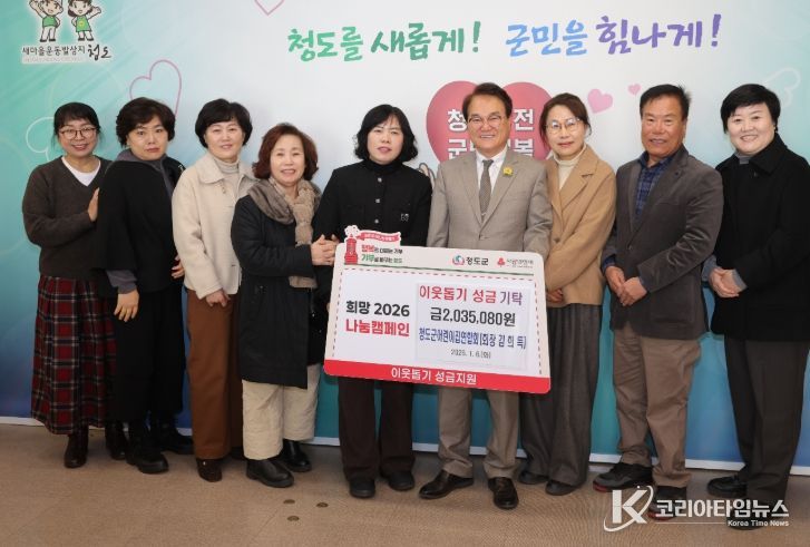 코리아타임뉴스 경북취재본부 | 청도군 어린이집연합회(회장 김희득)는 지난 6일 '희망2026 나눔캠페인 이웃돕기 성금' 2,035,080원을 청도군에 전달했다.