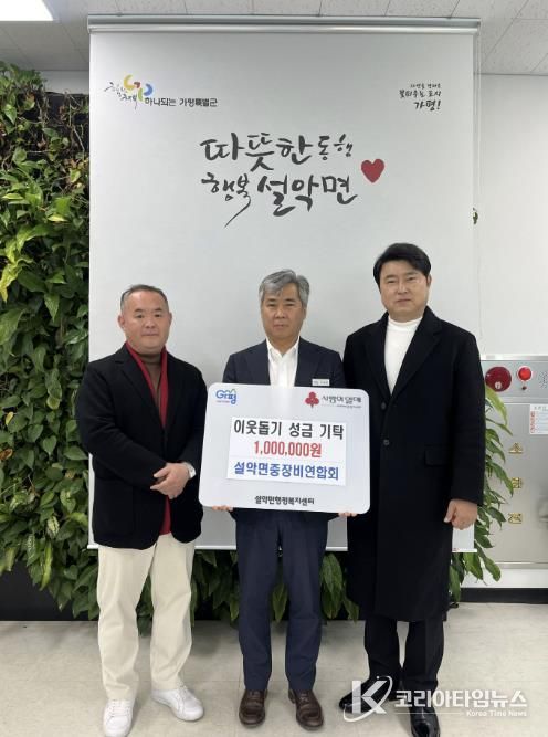 코리아타임뉴스 기동취재팀 | 가평군 설악면중장비연합회 권혁 회장과 안태영 총무는 6일 설악면 행정복지센터를 방문해 이웃돕기 성금을 전달했다. 이번 기탁은 14년째 이어온 연합회의 정기적인 나눔 활동의 일환이다.