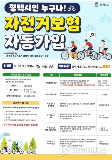 코리아타임뉴스 사회팀 | 평택시가 시민의 안전한 자전거 이용을 위해 전 평택시민을 대상으로 하는 자전거 보험을 2026년에도 갱신 가입하고, 각종 자전거 사고에 대비한 보장을 지속 제공한다고 밝혔다.