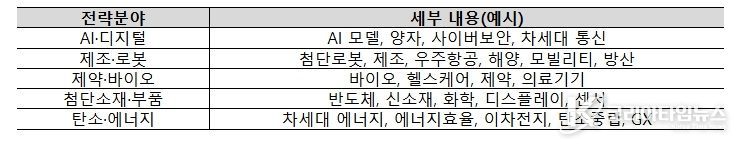 중기부는 국가경쟁력과 직결된 ▲AI·디지털 ▲첨단로봇·제조 ▲제약·바이오 ▲첨단소재·부품 ▲탄소·에너지의 5개 전략분야를 중심으로 단계별 검증을 거쳐 국내 산업생태계 혁신과 글로벌 신시장 창출이 가능한 5개 프로젝트를 선정할 계획이다.