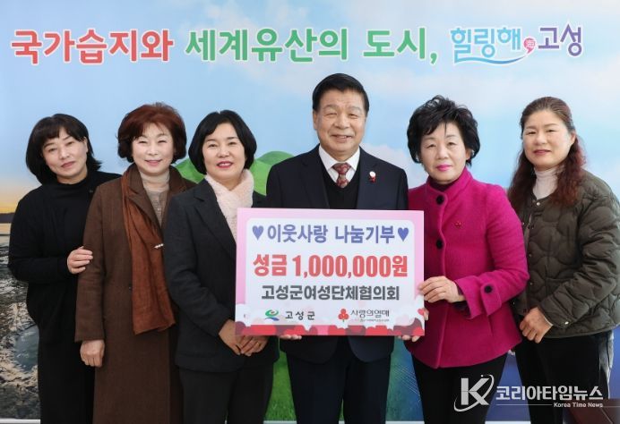 코리아타임뉴스 경남취재본부 | 고성군은 고성군여성단체협의회(회장 최외숙)가 1월 8일 고성군청을 방문해 소외계층을 위한 이웃돕기 성금 100만 원을 기탁했다고 밝혔다.