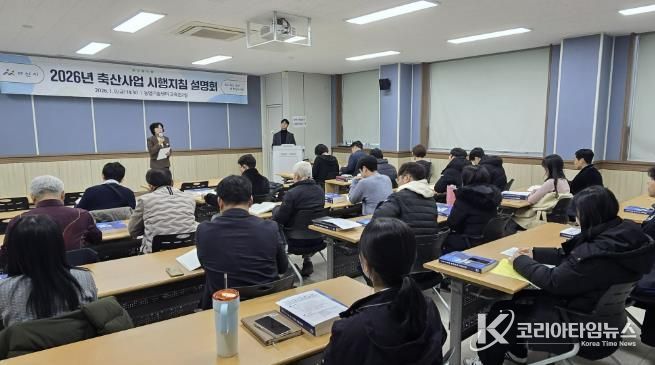 코리아타임뉴스 김택호 기자 | 아산시 농업기술센터는 지난 9일 아산시농업기술센터 교육관에서 「2026년 축산사업 시행지침 설명회」를 개최했다. 이날 설명회에는 읍·면·동 축산사업 담당자를 비롯한 축산단체 및 유관기관 관계자 등 50여 명이 참석했다.