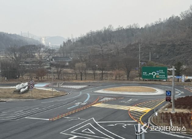 코리아타임뉴스 이아름 기자 | 영월군은 한반도면 쌍용리 일원(쌍용2교차로)에 차량 흐름 개선과 교통사고 예방을 위해 회전교차로 설치 공사를 완료했다.