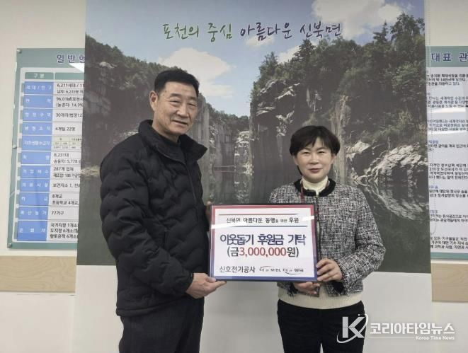 신미숙 신북면장은 “해마다 잊지 않고 따뜻한 나눔을 실천해 주시는 신호전기공사의 꾸준한 마음이 지역사회에 큰 힘이 되고 있다”며 “전달된 성금은 꼭 필요한 이웃들에게 실질적인 도움이 될 수 있도록 소중히 사용하겠다”고 전했다.