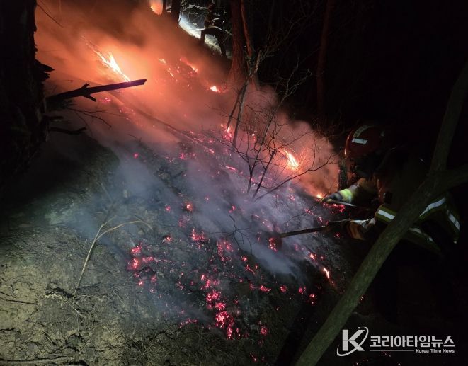 코리아타임뉴스 김태훈 기자 | 경상북도 소방본부가 10일 15시경에 발생한 의성군 의성읍 비봉리 일원 산불 현장에 ‘경북형 소방산불진화대’를 신속 투입해 산불 초기 진화와 확산 차단에 성공하며, 선제적 산불 대응 정책의 실효성을 입증했다.