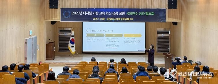 코리아타임뉴스 사회팀 | 대전시교육청은 1월 13일 대전교육정보원에서 연수 참여 교원과 교육청 관계자 등 30여 명이 참석한 가운데 ‘2025 디지털 기반 교육혁신 유공 교원 국외연수’ 성과 발표회를 개최했다고 밝혔다.