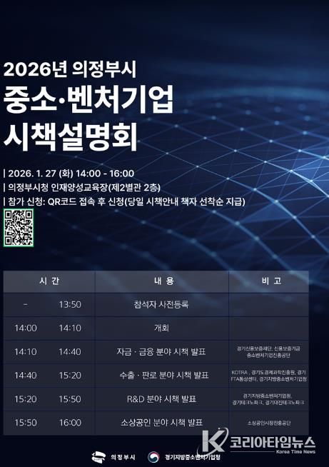 코리아타임뉴스 기동취재팀 | 의정부시는 ‘2026년 중소‧벤처기업 시책설명회’에 참가할 지역 중소‧벤처기업인을 1월 26일까지 모집한다.