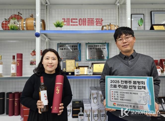 코리아타임뉴스 경남취재본부 | 밀양시에 소재한 농업회사법인 레드애플팜(주)는 ‘2025년 제3회 경남 술도가 전통 으뜸 주 선발대회’ 과실주 부문에서 ‘으뜸 주’로 선정되며 3년 연속 으뜸 주에 이름을 올렸다고 14일 밝혔다.