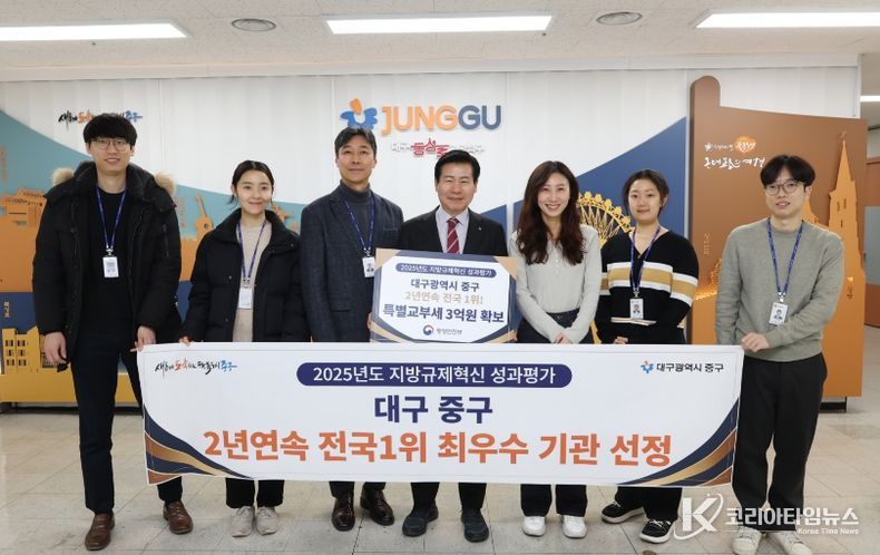 코리아타임뉴스 대구취재본부 | 대구 중구는 행정안전부가 주관한 ‘2025년 지방규제혁신 성과평가’에서 2년 연속 최우수 기관으로 선정되며 규제혁신 선도 도시로서의 위상을 다시 한번 입증했다.