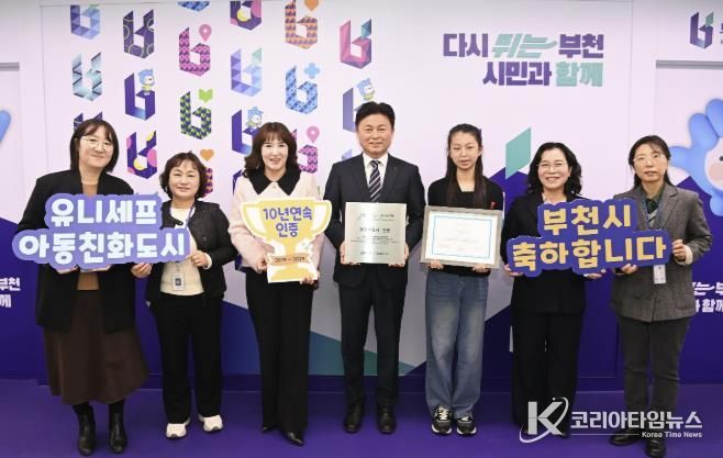 코리아타임뉴스 경기취재본부 | 부천시는 유니세프 한국위원회로부터 ‘유니세프 아동친화도시’ 인증을 갱신했다고 14일 밝혔다. 이번 인증은 2019년 12월 최초 인증에 이어 자격을 유지한 것으로, 유효기간은 2029년 12월 30일까지다.