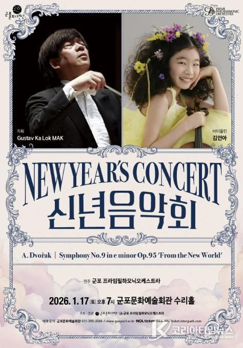 코리아타임뉴스 이아름 기자 | 군포문화예술회관은 2026년 새해를 맞아 군포 프라임필하모닉오케스트라와 공동기획으로 '2026 신년음악회'를 오는 1월 17일 오후 7시, 수리홀에서 개최한다.