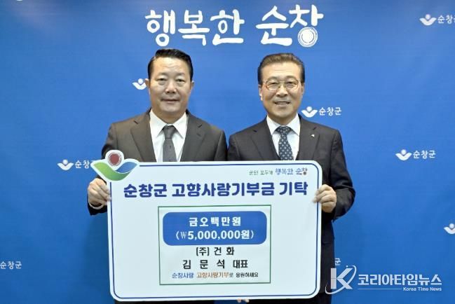 코리아타임뉴스 김태훈 기자 | 순창군은 15일 ㈜건화 김문석 대표이사가 순창군에 고향사랑기부금 500만원을 기탁했다고 밝혔다.