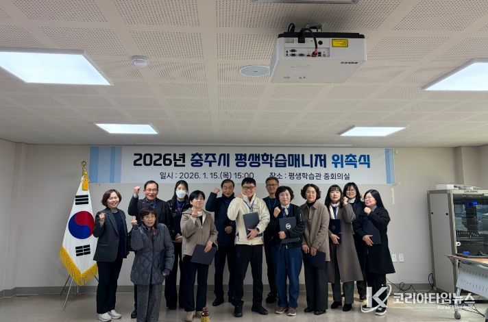 코리아타임뉴스 박찬식 기자 | 충주시 평생학습관은 시민의 근거리 학습권 보장과 지역 맞춤형 평생학습 실현을 위해 15일 충주시 평생학습관에서‘2026년 충주시 평생학습매니저 위촉식’을 개최하고 평생학습매니저 15명을 위촉했다.