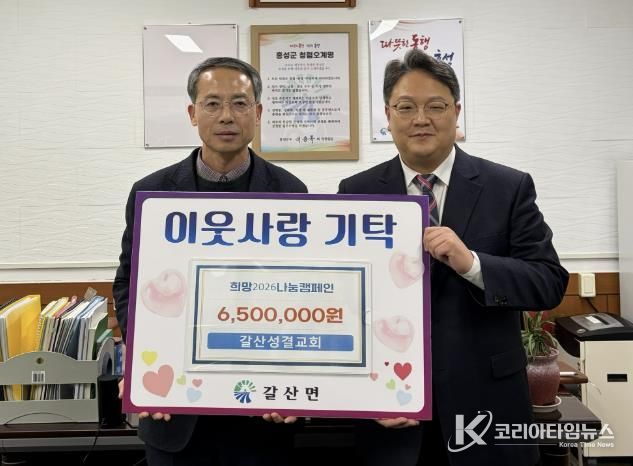 김완섭 갈산면장은 “희귀난치성질환 가구는 경제적·정신적으로 큰 부담을 안고 생활하고 있다”며, “갈산성결교회의 따뜻한 나눔이 대상 가구에 큰 위로와 용기가 될 것”이라고 말했다.