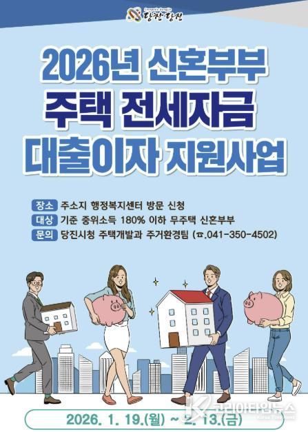 코리아타임뉴스 김택호 기자 | 당진시는 1월 19일부터 2월 13일까지‘2026년 신혼부부 주택 전세자금 대출이자 지원사업’ 신청자를 모집한다고 16일 밝혔다.