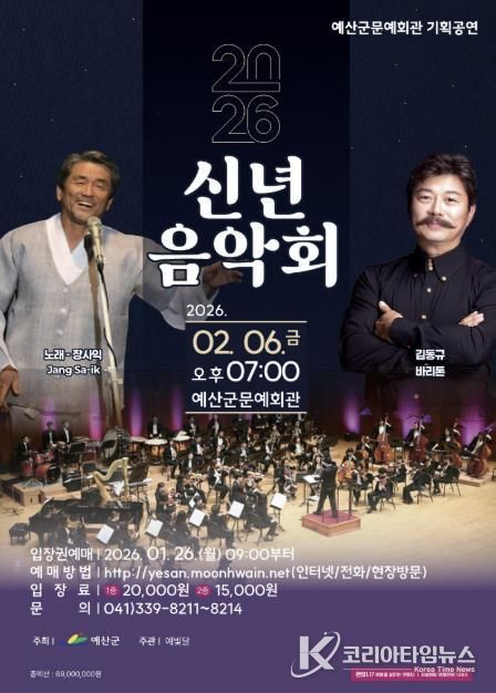 코리아타임뉴스 김택호 기자 | 예산군은 군민과 함께 희망찬 2026년 새해를 여는 ‘2026년 신년 음악회’를 오는 2월 6일 오후 7시 예산군문예회관 공연장에서 개최한다고 밝혔다.