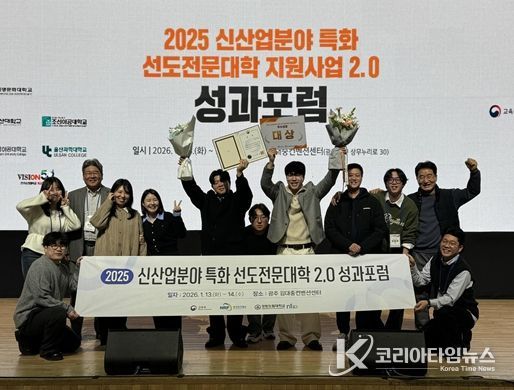 코리아타임뉴스 이아름 기자 | 강원도립대학교는 ‘신산업분야 특화 선도전문대학 지원사업 2.0 성과포럼’ 우수성과 전시 시상식에서 대학 부문 우수성과 ‘대상’ 수상과 함께, 소속 학생인 한재민 학생이 개인 부문 사업 성과 대상(교육부 장관상)을 수상하여 대학·개인 2개 부문을 석권했다.