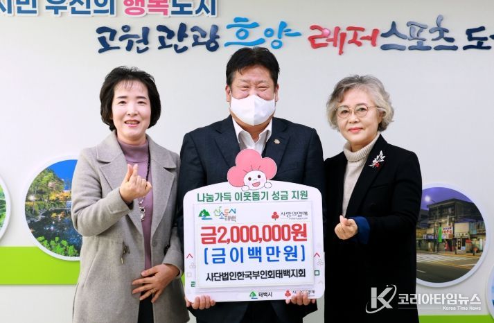 코리아타임뉴스 이아름 기자 | 태백시는 사단법인 한국부인회 태백지회(회장 김애숙)가 지난 15일 저소득 가구 및 소외계층을 위해 성금 200만 원을 기부했다고 밝혔다.