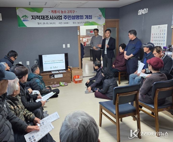 코리아타임뉴스 충남취재본부 | 충남 계룡시는 2026년도 지적재조사사업 실시계획에 따른 사업지구 지정을 위해 지난 14일과 16일 농소2지구와 광석2지구 토지소유자 및 이해 관계인들을 대상으로 주민설명회를 개최했다.