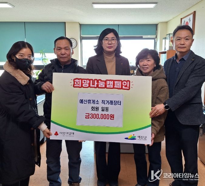 코리아타임뉴스 김택호 기자 | 예산군은 예산휴게소 직거래장터 대신회 회원들이 지역사회 소외된 이웃을 돕기 위해 예산군에 ‘희망 2026 나눔 캠페인’ 성금 30만원을 기탁하며 따뜻한 나눔을 실천했다고 16일 밝혔다.