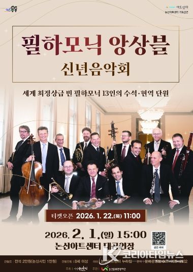 코리아타임뉴스 충남취재본부 | (재)논산문화관광재단은 오는 2월 1일 오후 3시, 논산아트센터 대공연장에서‘필하모닉 앙상블 신년음악회’를 개최한다고 전했다.