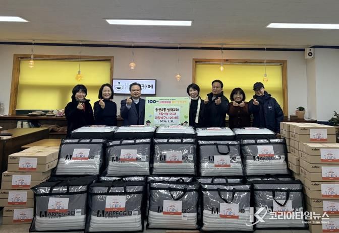 코리아타임뉴스 기동취재팀 | 의정부시 송산2동주민센터는 1월 15일 성약교회가 겨울이불 및 과일바구니 25세트를 기탁했다고 밝혔다.