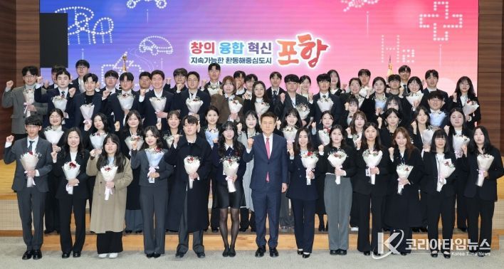 코리아타임뉴스 경북취재본부 | 포항시는 16일 시청 대회의실에서 공직 생활의 첫걸음을 시작한 신규 공무원 56명을 대상으로 임용식을 개최했다.
