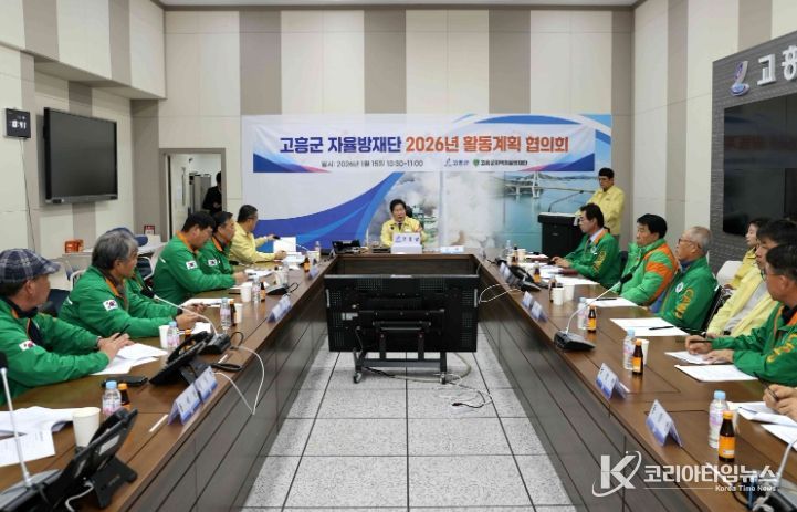 코리아타임뉴스 전남취재본부 | 고흥군은 지난 15일 재난종합상황실에서 16개 읍·면 지역자율방재단장 등 19명이 참석한 가운데 2026년 자율방재단 활동 방향을 공유하고 재난 예방 및 대응 협력체계를 강화하기 위한 협의회를 개최했다.