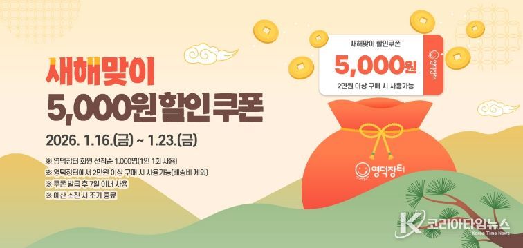 코리아타임뉴스 노승선 기자 | 영덕군은 지역 특산물의 우수성을 알리고 소비를 촉진하기 위해 온라인 쇼핑몰 ‘영덕장터’ 이용 고객을 대상으로 새해맞이 할인 이벤트를 진행한다.