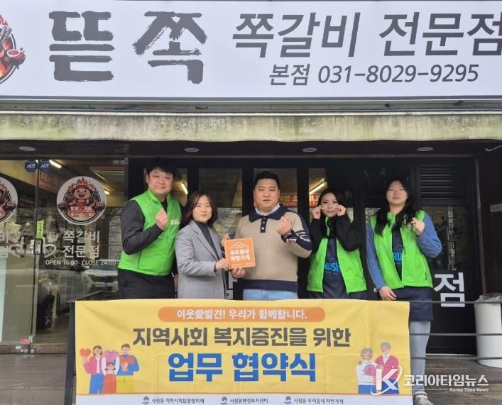 코리아타임뉴스 사회팀 | 평택시 서정동 지역사회보장협의체는 지난 14일, 서정동에 있는 음식점 ‘뜯쪽!’을 '우리동네 착한가게'로 지정하고 현판 전달과 함께 지역사회 복지증진을 위한 협약을 체결했다.