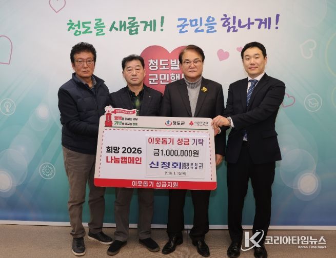 코리아타임뉴스 경북취재본부 | 청도 신정회(회장 류점규)는 지난 15일 희망2026 나눔캠페인 이웃돕기 성금 100만원을 청도군에 전달했다.