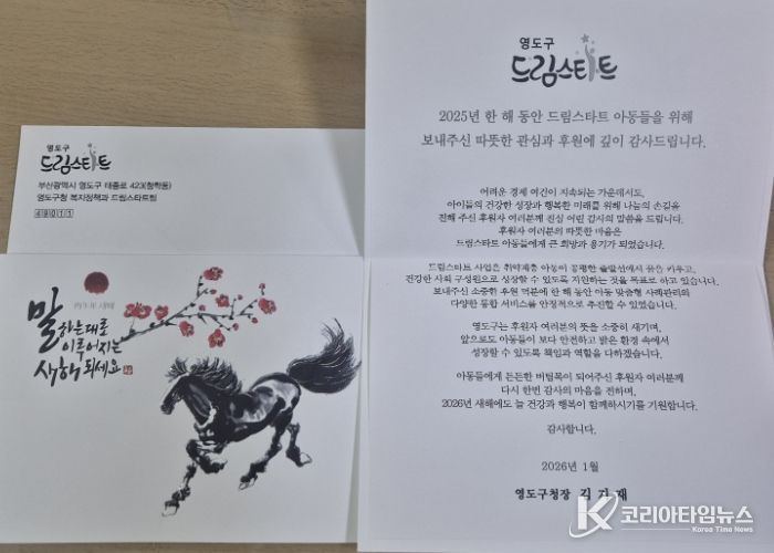 코리아타임뉴스 이아름 기자 | 영도구 드림스타트는 지난 1월 16일 드림스타트 아동을 위해 후원과 협력을 이어온 후원업체 및 협약기관 37곳에 감사 서한을 발송했다.