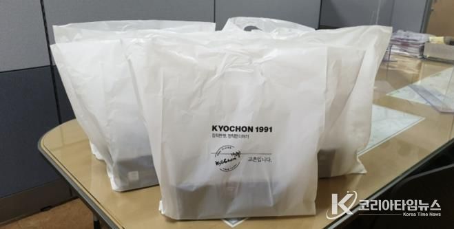 코리아타임뉴스 사회팀 | 수원시 영통구 매탄동에 위치한 교촌치킨 매탄2호점은 지난 16일, 지역 내 취약계층을 지원하기 위해 치킨 5세트를 매탄2동 행정복지센터에 전달했다.