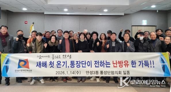 코리아타임뉴스 경기취재본부 | 안성시 안성3동 통장협의회는 지난 14일 겨울철 난방에 어려움을 겪는 취약계층을 돕기 위해 30만원 상당 난방유 쿠폰을 기부하며 따뜻한 나눔을 실천했다.