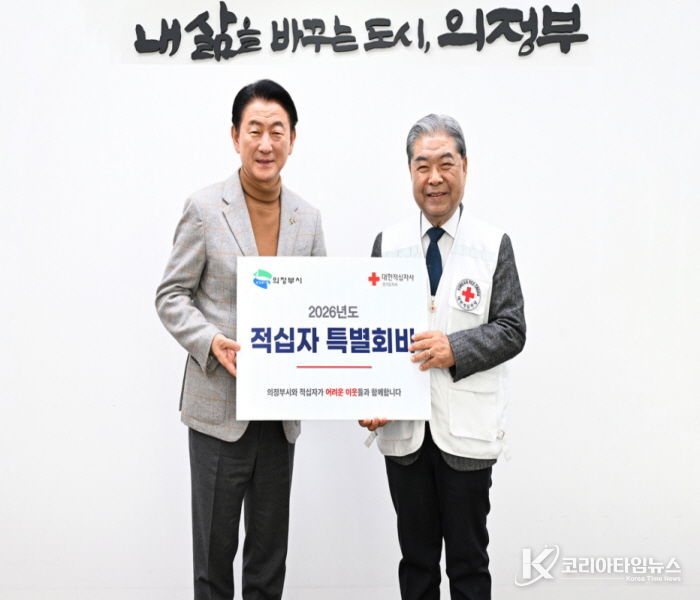 코리아타임뉴스 기동취재팀 | 의정부시는 1월 19일 시장실에서 대한적십자사 경기도지사에 ‘2026년도 적십자 특별회비’ 217만 원을 전달하며 지역사회의 나눔과 인도주의 실천에 앞장섰다.