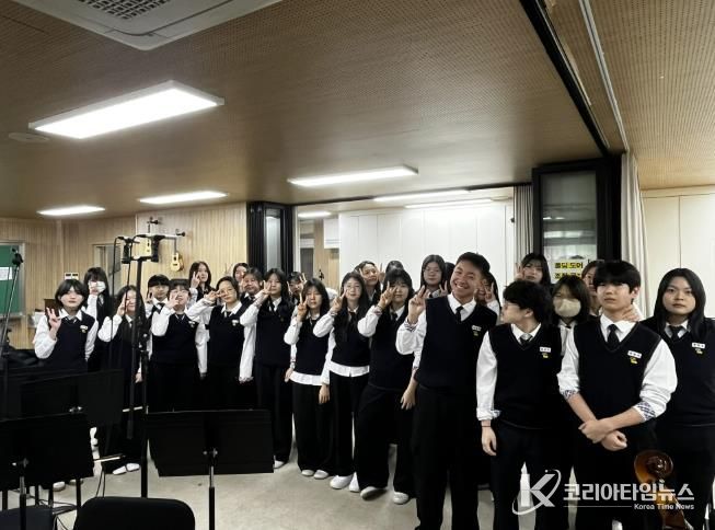 코리아타임뉴스 사회팀 | 경안중학교는 지난 1월 14일부터 15일까지 운영한 겨울 음악캠프 기간 동안, 경안유스오케스트라와 새빛하모니 합창부 학생들이 참여한 가운데 교가 녹음 프로젝트를 성공적으로 마쳤다고 밝혔다. 학생들이 직접 연주하고 노래한 교가가 새로운 음원으로 탄생하며 학교의 상징에 특별한 의미를 더했다.