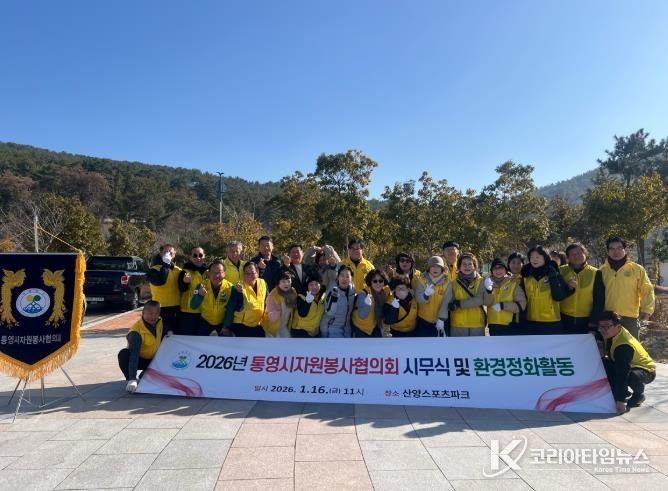 코리아타임뉴스 오영주 기자 | 통영시자원봉사협의회는 지난 16일 산양스포츠파크 일원에서 2026년 시무식과 함께 환경정화활동을 진행하며 새해 공식 활동의 막을 올렸다.
