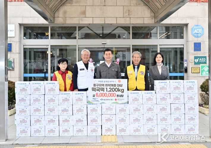 코리아타임뉴스 울산취재본부 | 울산고래떡방협동조합이 1월 19일 오전 11시 중구청 구청장실을 찾아 대한적십자사 울산광역시지사를 통해 600만 원 상당의 이웃돕기 떡국떡 600상자를 전달했다.